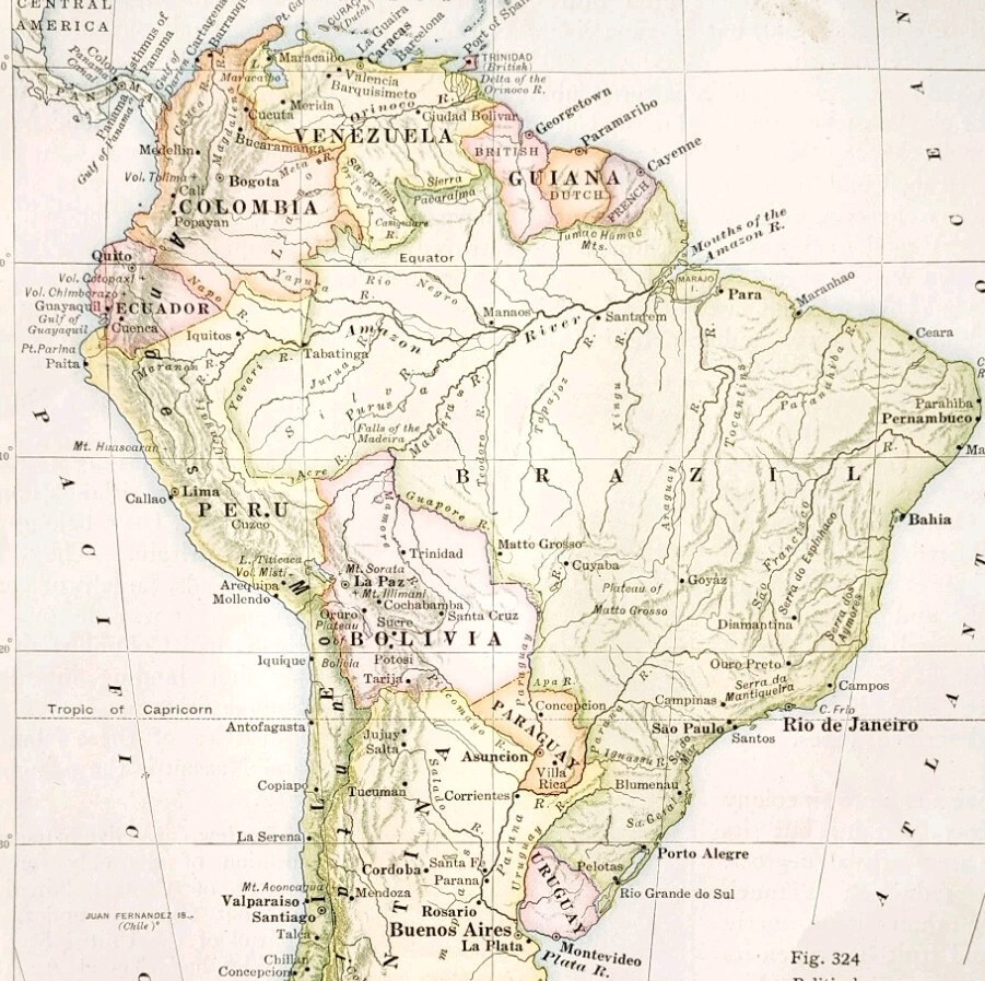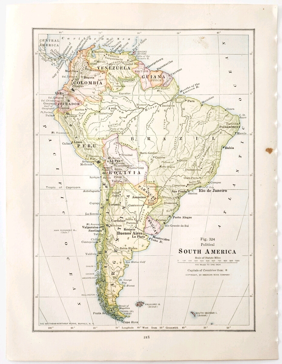 - 1916 Map South America Political Boundaries Brazil Chile Argentina Guiana DWSS8