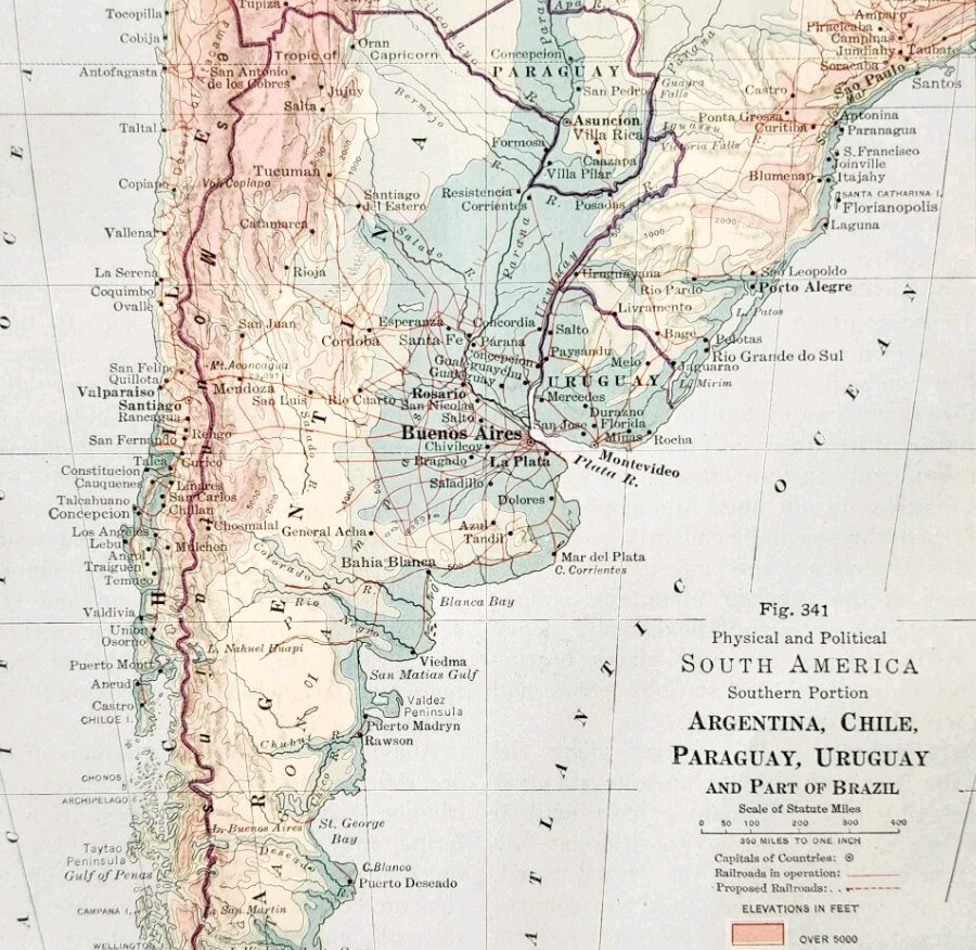 - 1916 Map South America Political Chile Argentina Paraguay Uruguay Brazil DWSS8