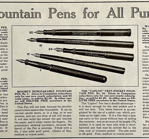 Primary image for 1916 Parker Fountain Pen Advertisement Waterman Moore Caplox DWMYC1
