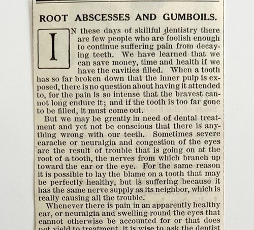 - 1916 Root Abscesses Gumboils Dental Article Medical Ephemera DWMYC1