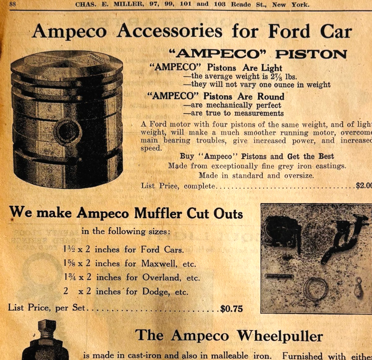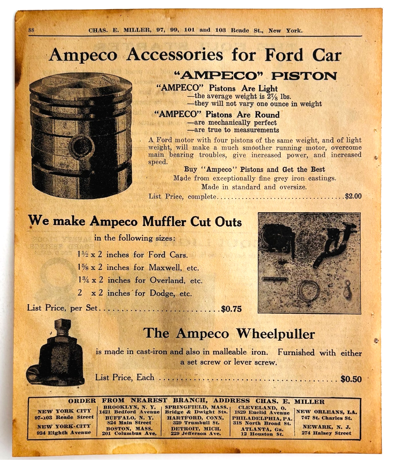 Primary image for 1917 Ampeco Ford Car Accessories Advertisement Chas Miller Automobilia F15A