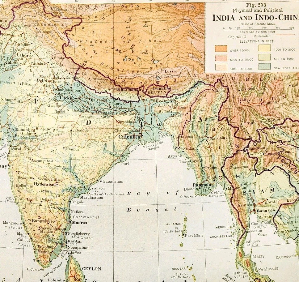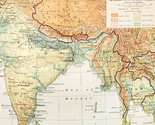 - 1920 Map India Indo China Physical Political Baluchistan Siam Tibet Vintage DWQ5