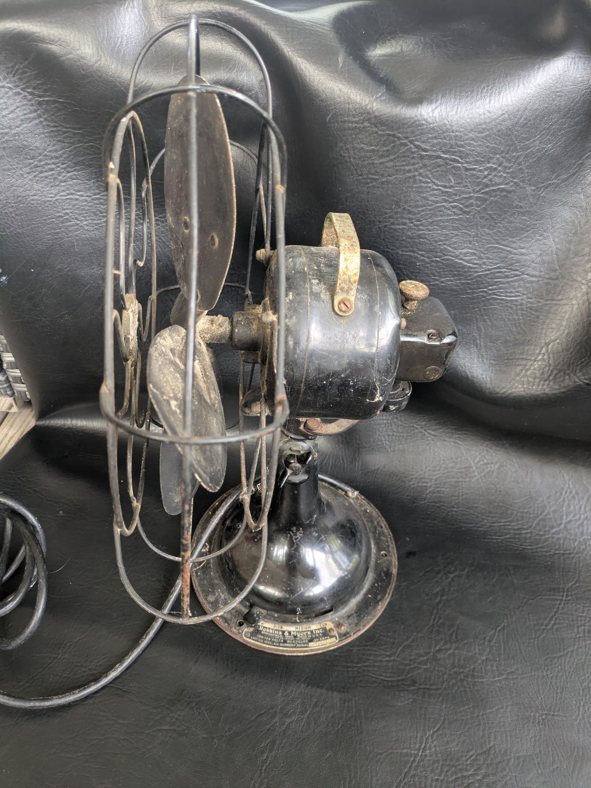 The 1920 Robbins Myers 1204 18 Inch 3 Speed 4 Blade Oscillating Fan is a vintage electric fan designed for indoor use. With a round shape and a blade diameter of 12 inches, this antique fan features a cast iron construction and a black finish. Made in the United States during the early 20th century, this table/desk fan is equipped with a switch control for adjusting the speed and boasts the original oscillation feature. The fan's vintage charm and historical significance make it a unique and valuable addition to any room or collection.