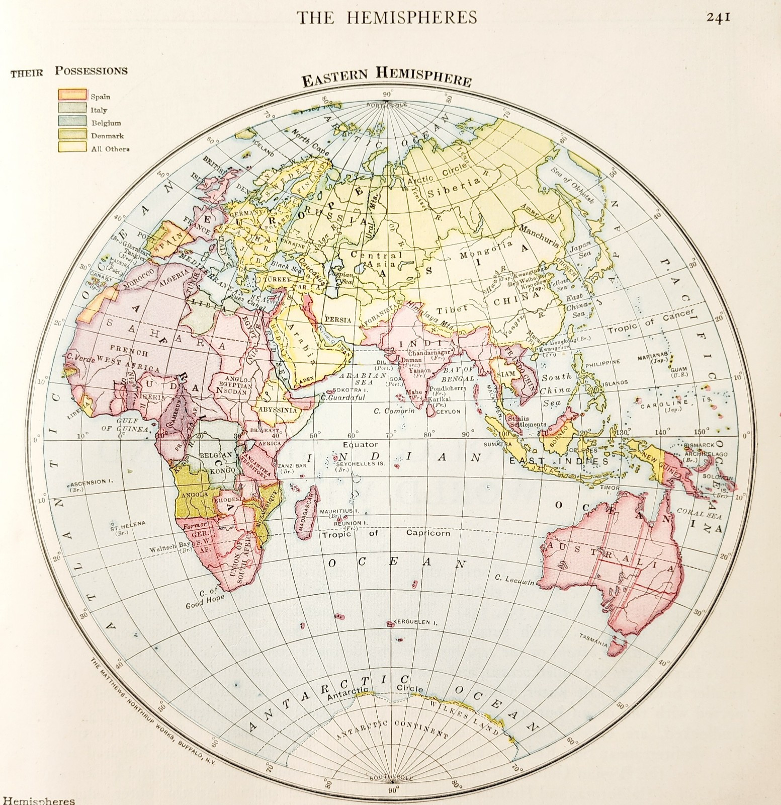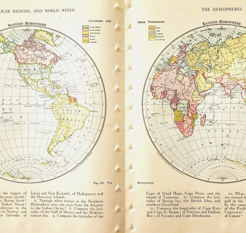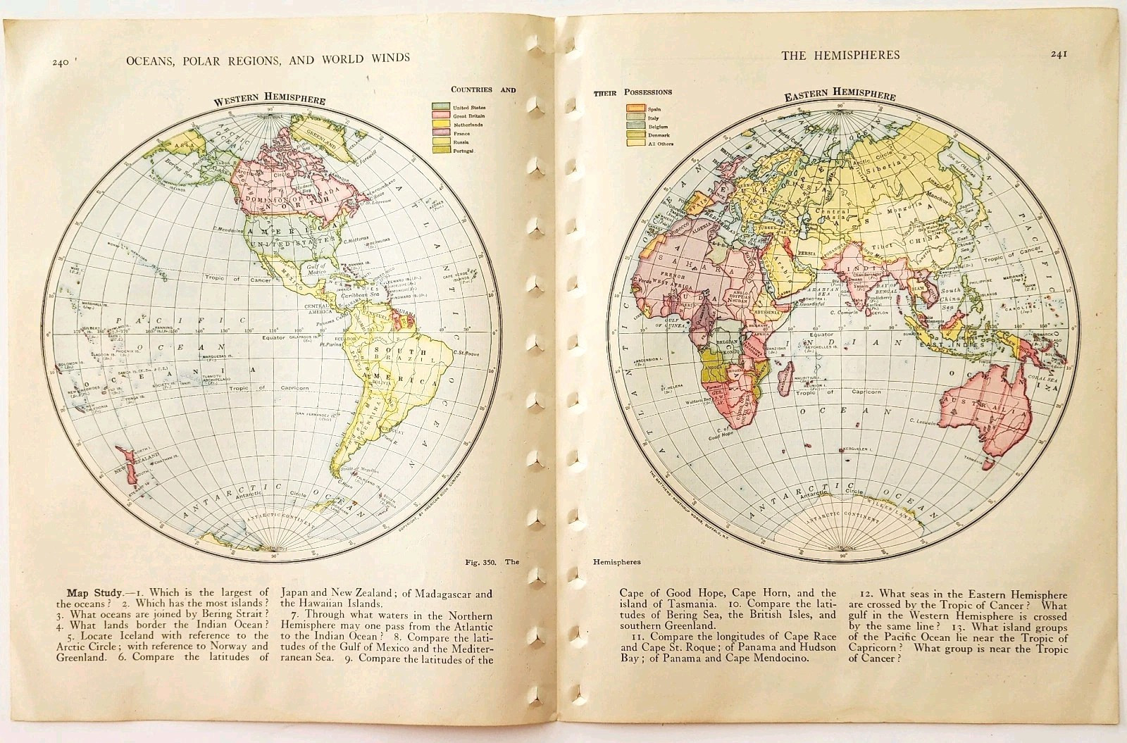 - 1920 World Map Eastern Western Hemispheres Countries And Possessions DWQ6