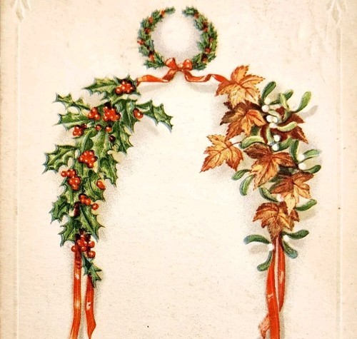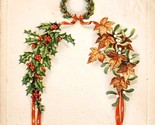 1920s Greeting Card Postcard Happy New Year Holiday Holly Wreath Ephemera E83C