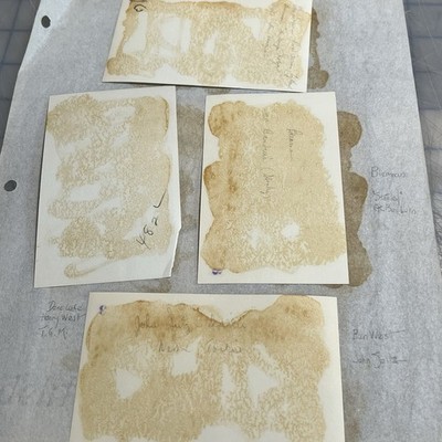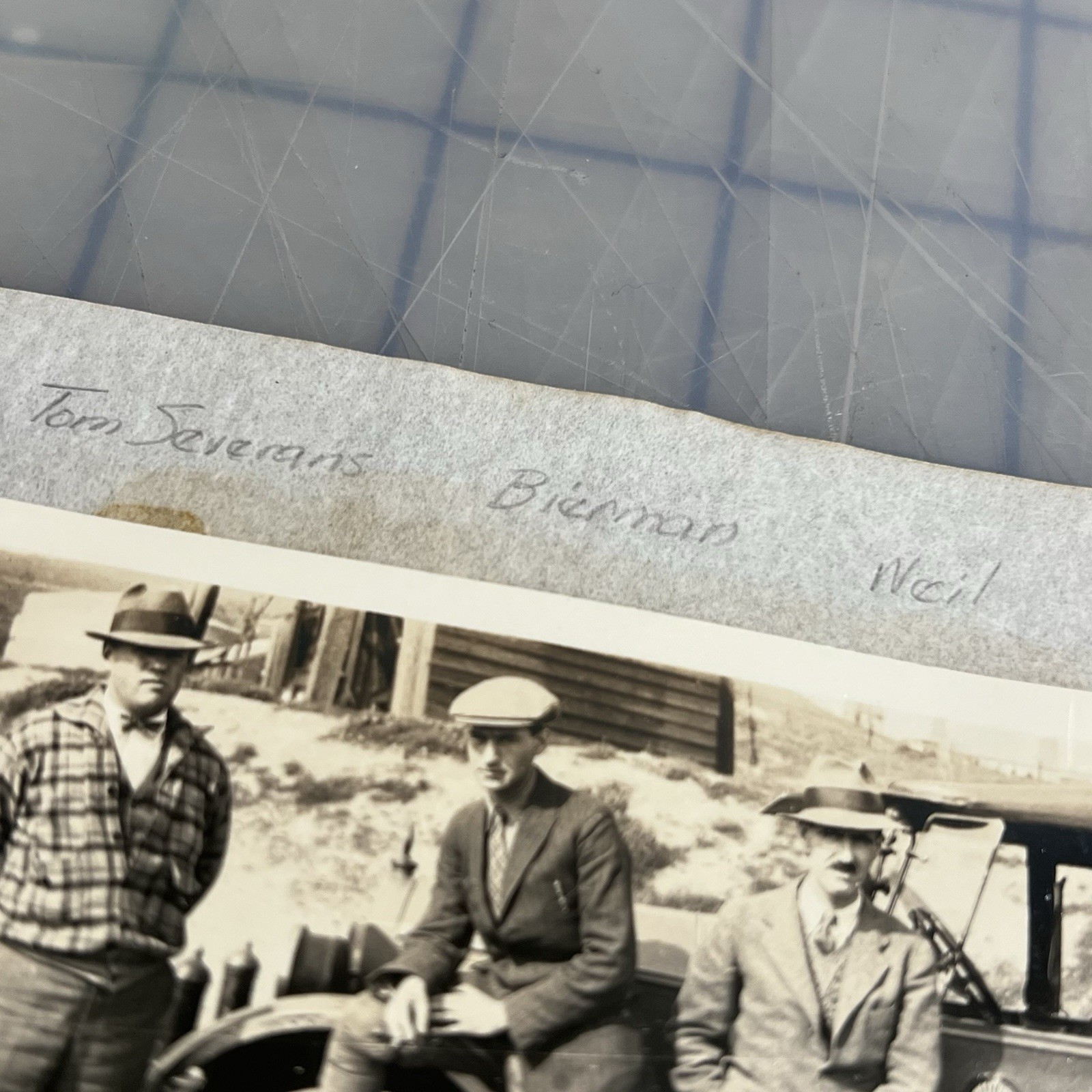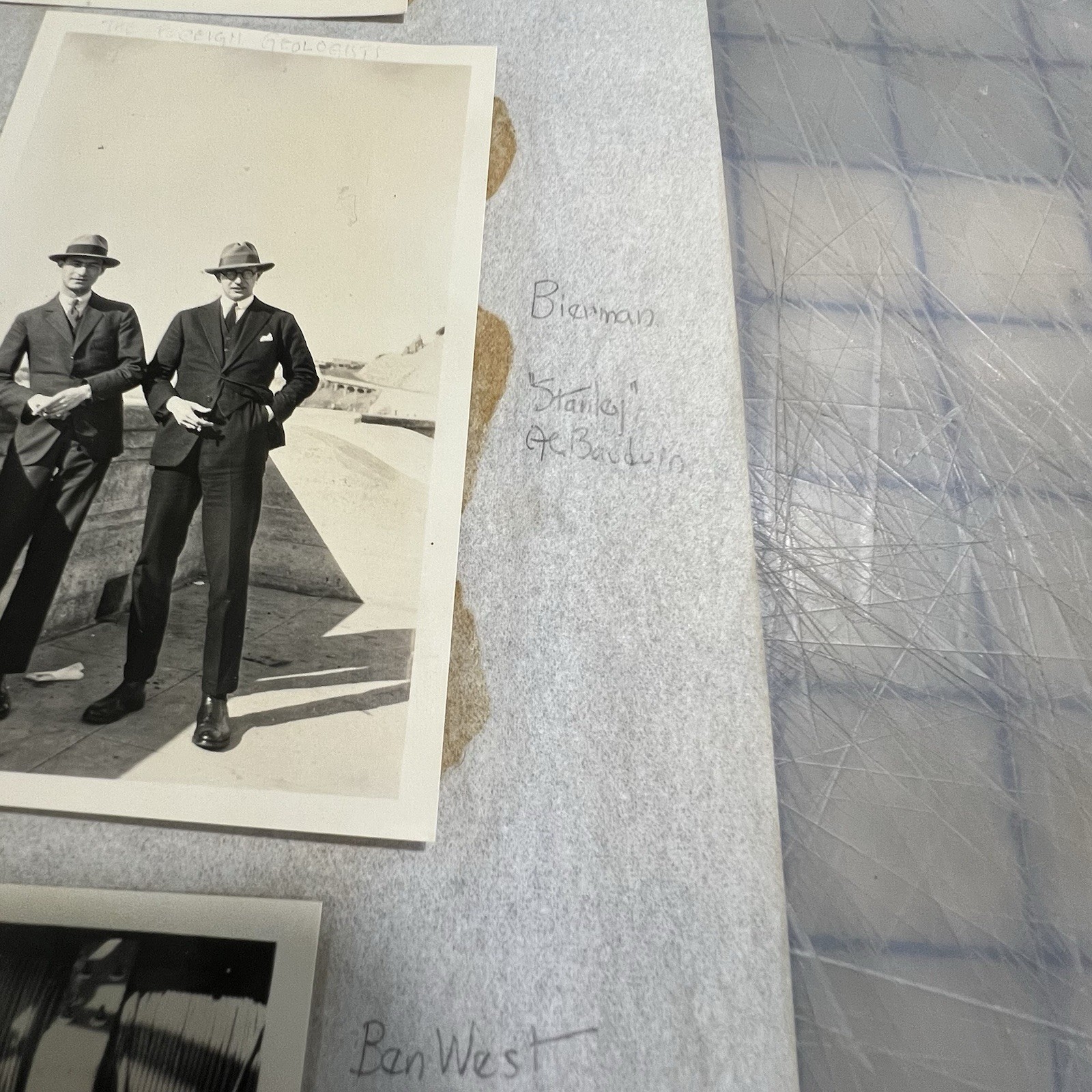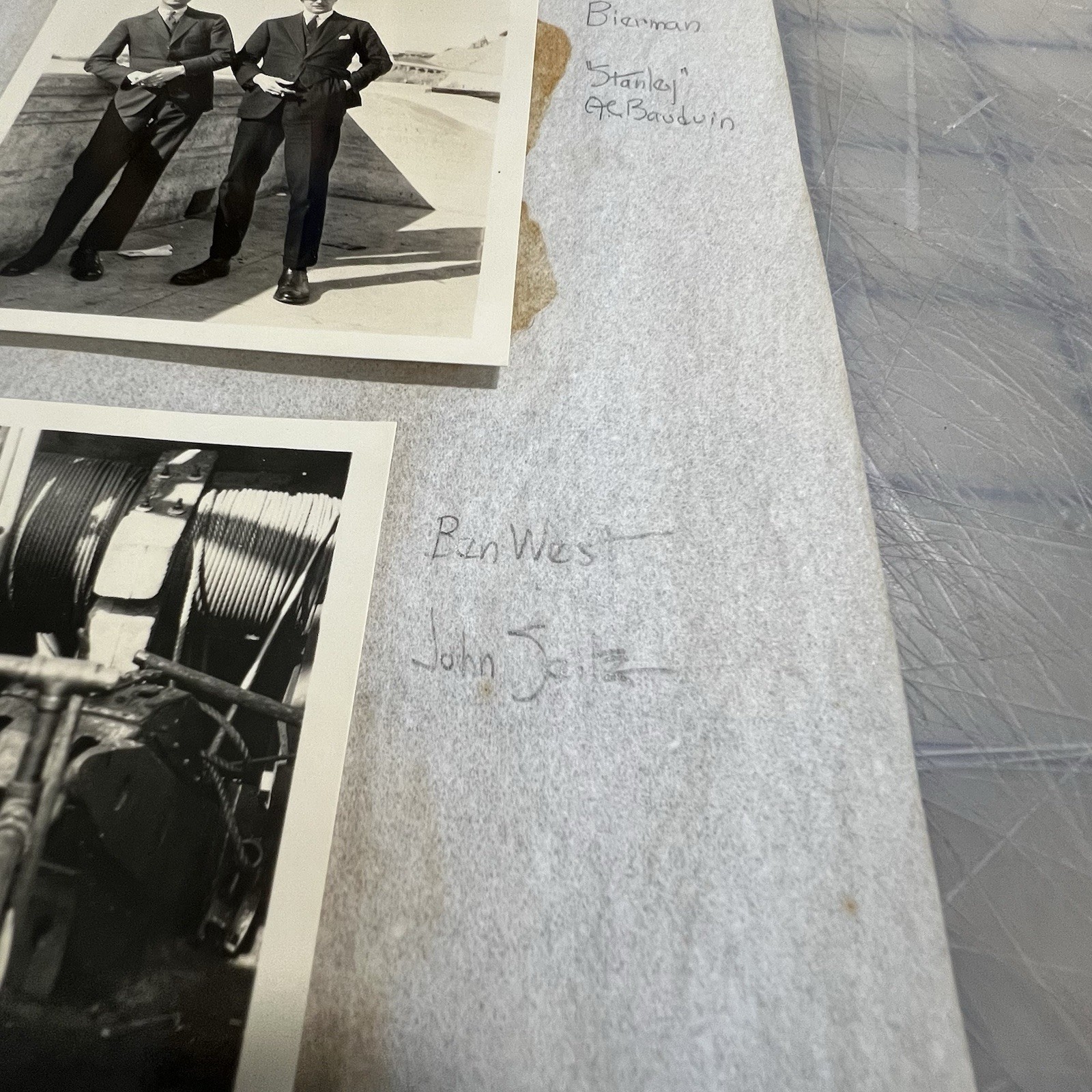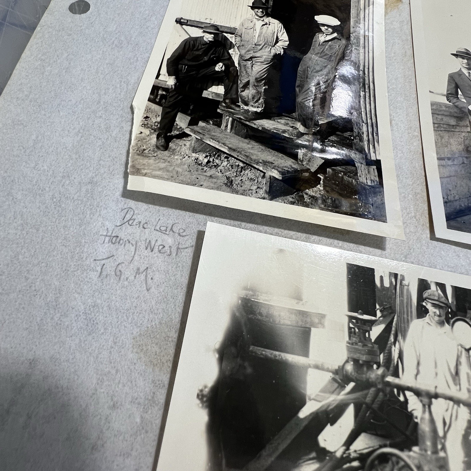 Four orignal photos of Southern California oil workers. The men are named in the notes. The pictures have all come loose from the page, but you can see by the pattern of the glue where they were on the page.