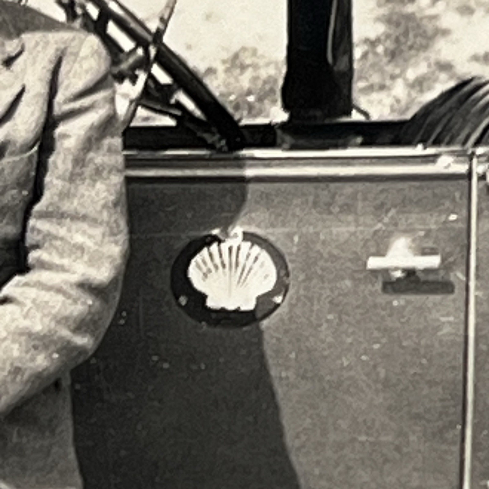 You can see the Shell Oil logo on the side of the car that are posing with in the top photo.
