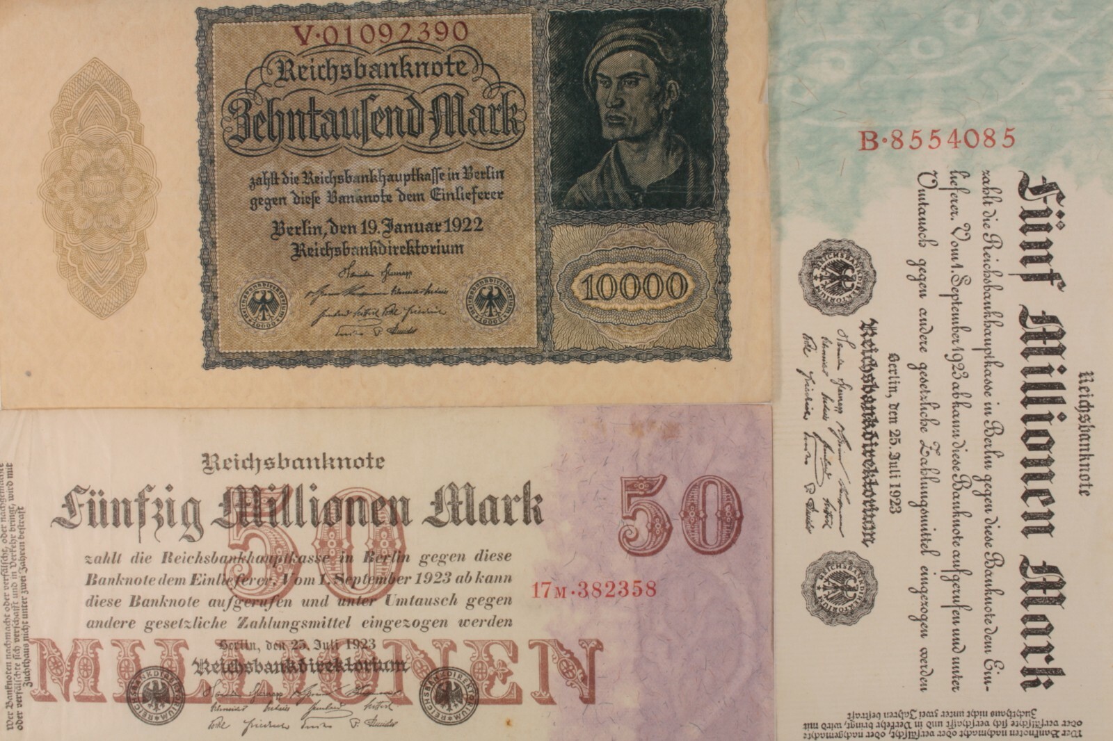 1922-1923 Germania 3-Notes Set // Weimar 10000, 5 milioni e 50 milioni di bollette Mark