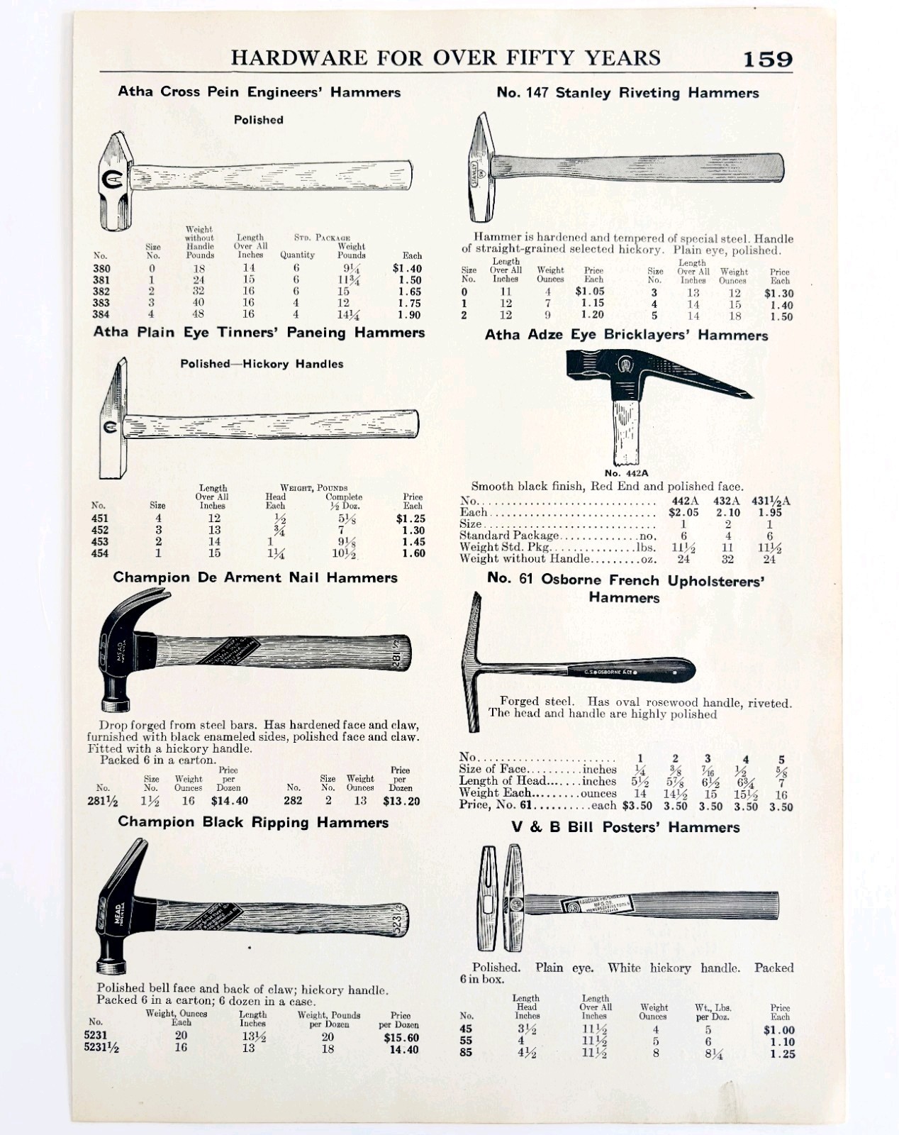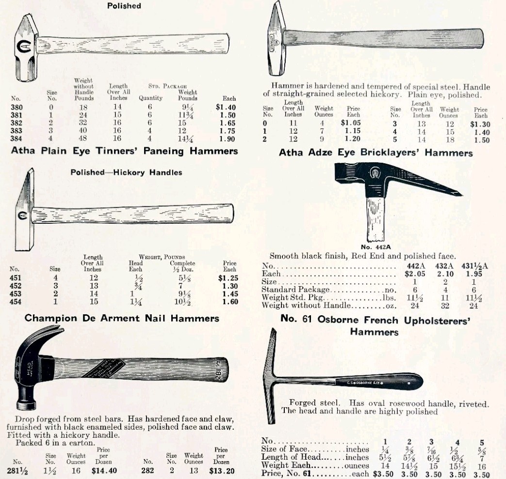 1922 N.T. Bushnell Hammers Tools Advertisement Catalogue Hardware DWA22