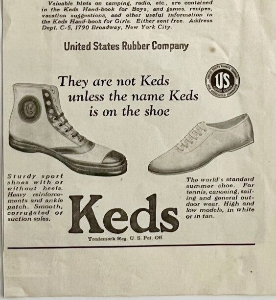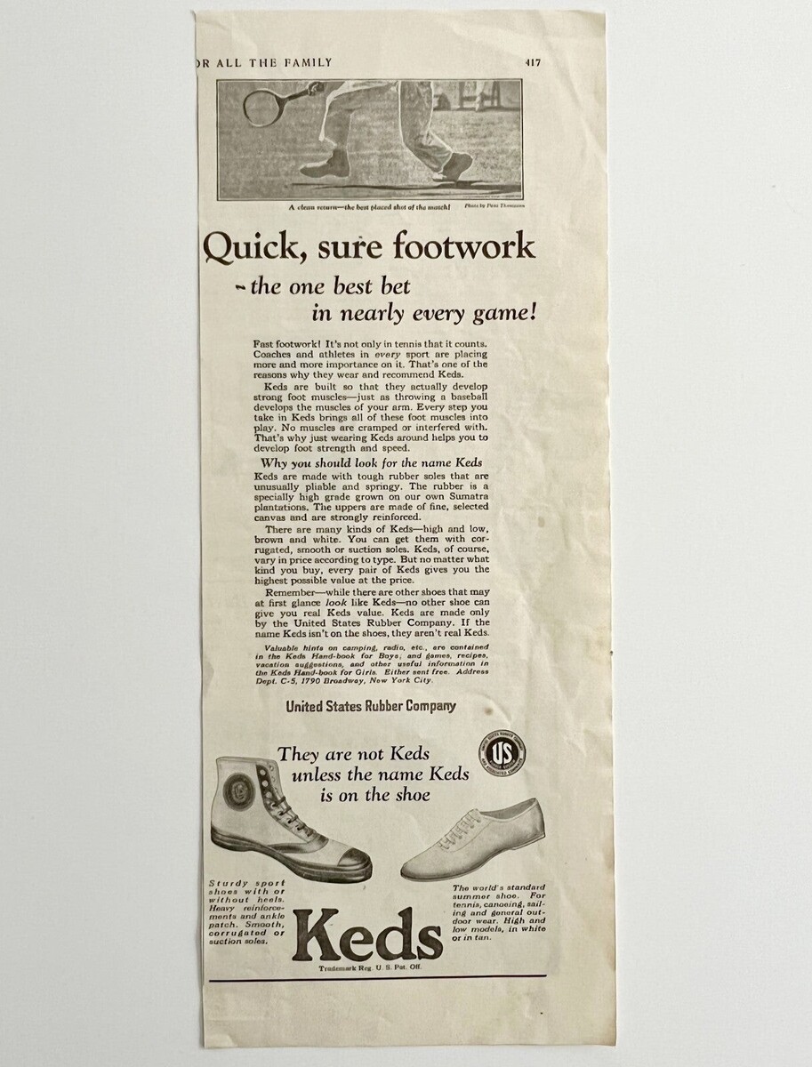 1923 Keds Sneakers U.S. Rubber Co Advertisement Footwear Ephemera 14 x 5.5"