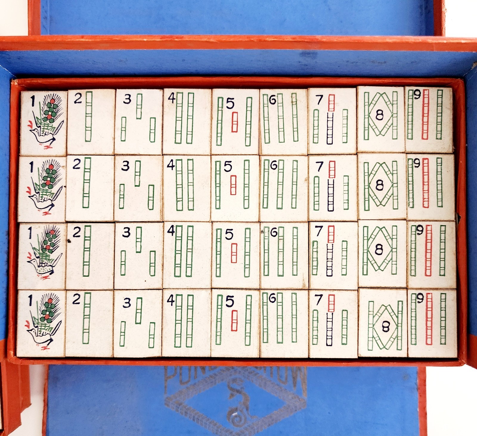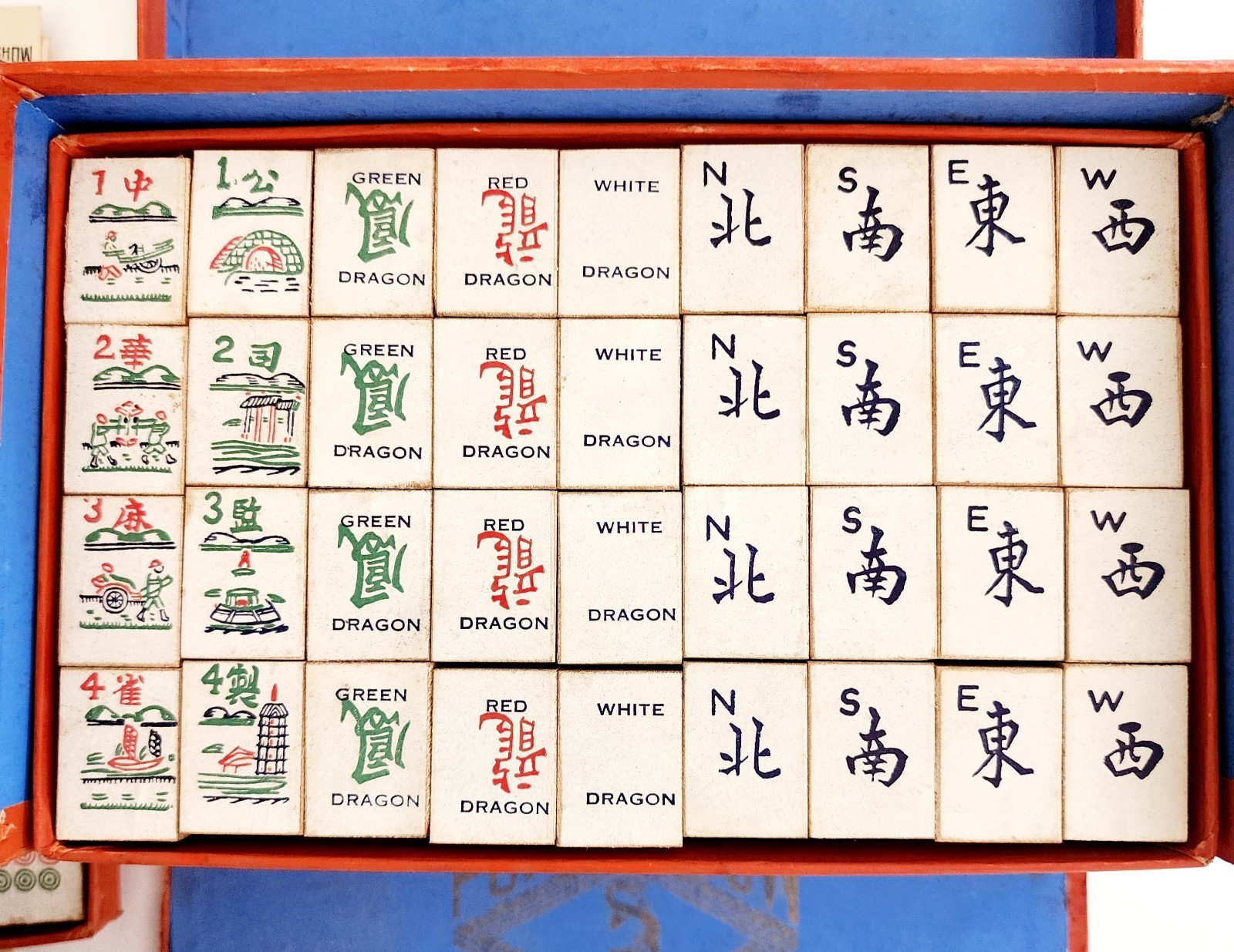 - 1923 Pung Chow Early Mah Jong Tile Game Complete Antique Educator Set BRDGMS