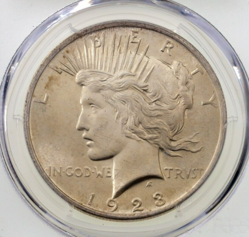 - 1923 S$1 Silver Peace Dollar Graded by PCGS as MS-64