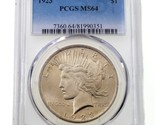 1923 S$1 Silver Peace Dollar Graded by PCGS as MS-64