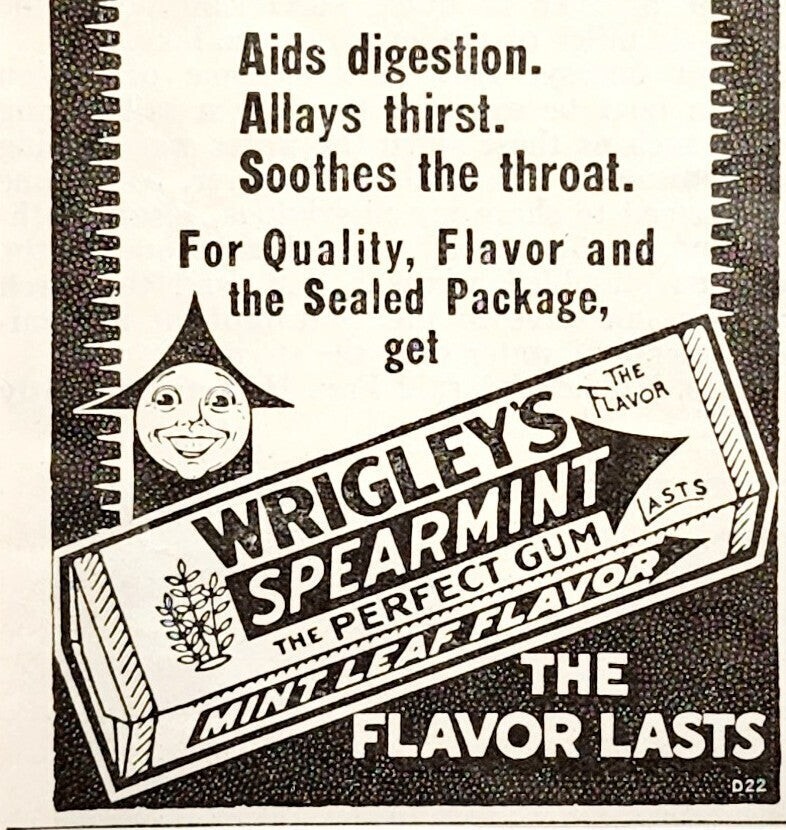 1923 Wrigley's Chewing Gum Advertisement Flavor D22 1 Ephemera Candy 4 x 2.25"