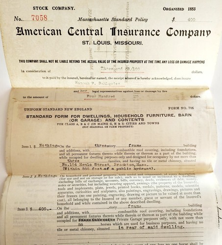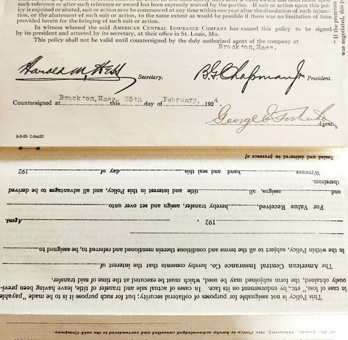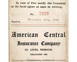 1924 American Central Insurance Co Policy George Fisher Stamp-Signed E3