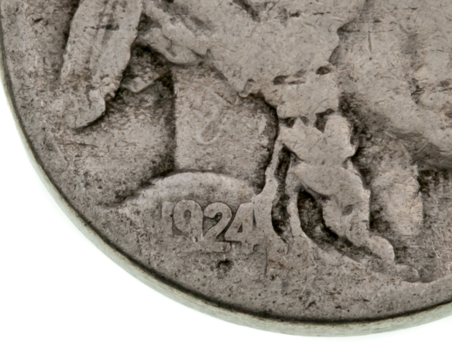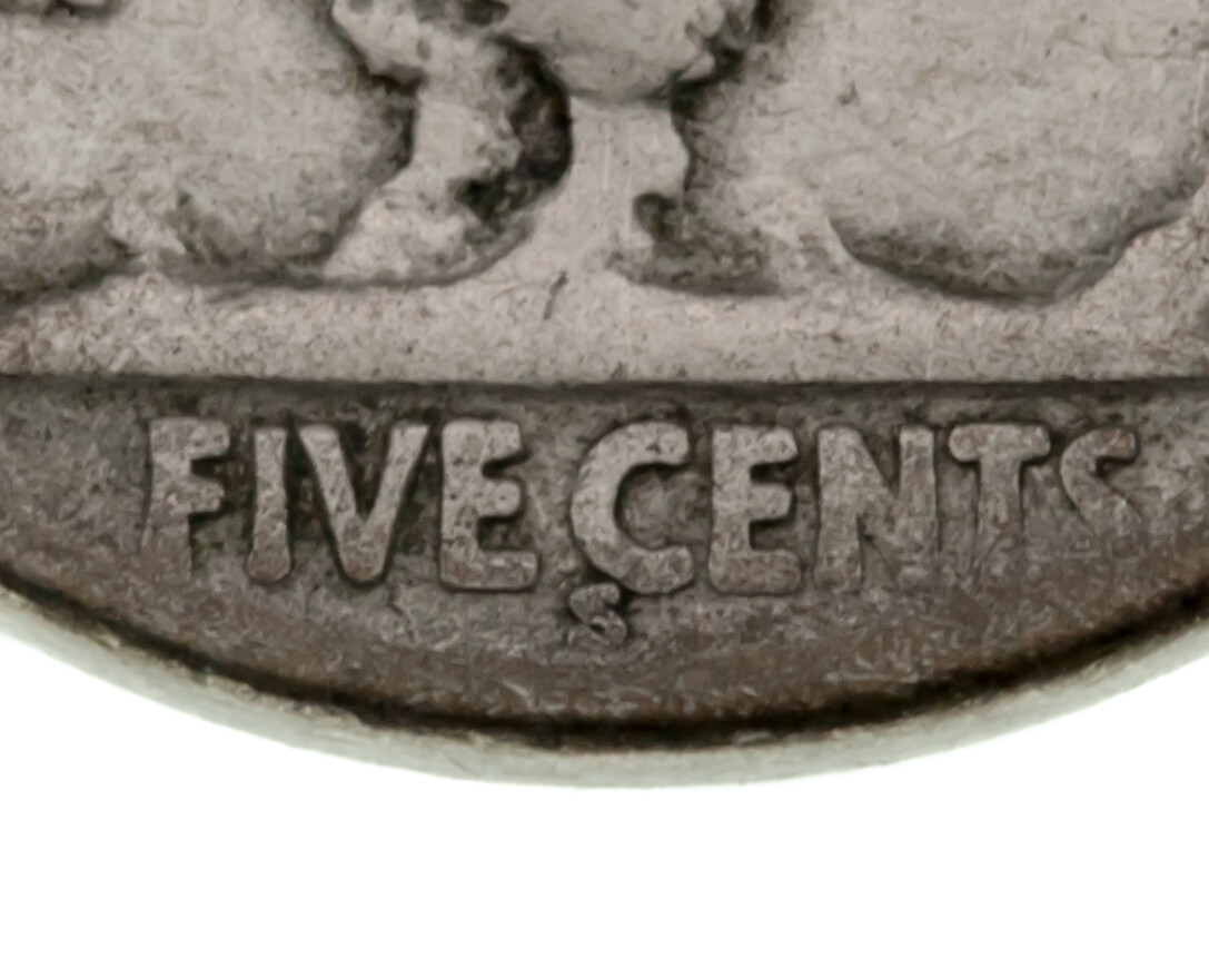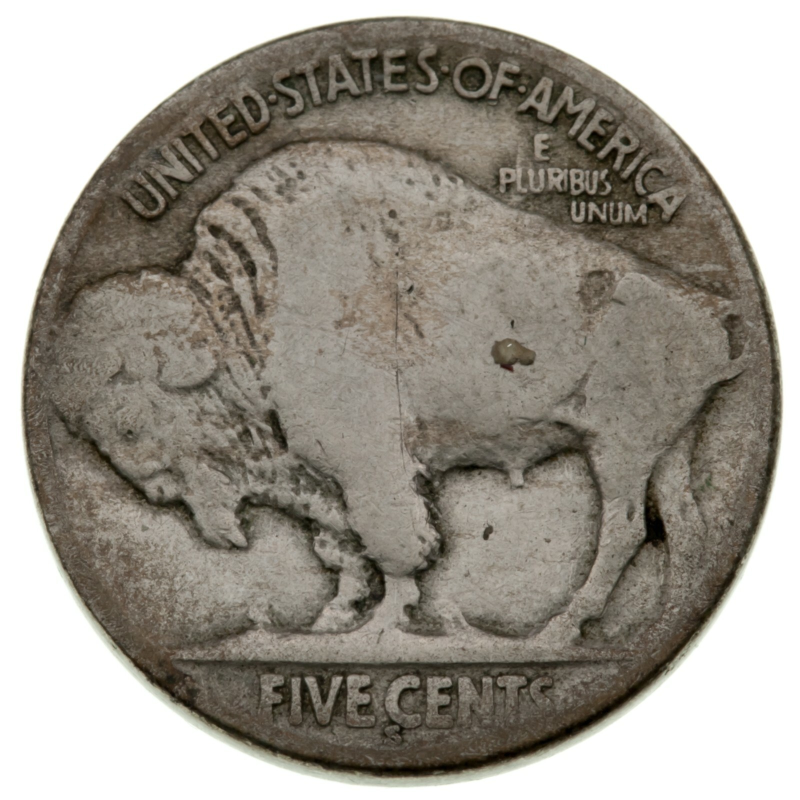- 1924-S 5C Buffalo Nickel in Very Good VG Condition, Natural Color, Some Toning