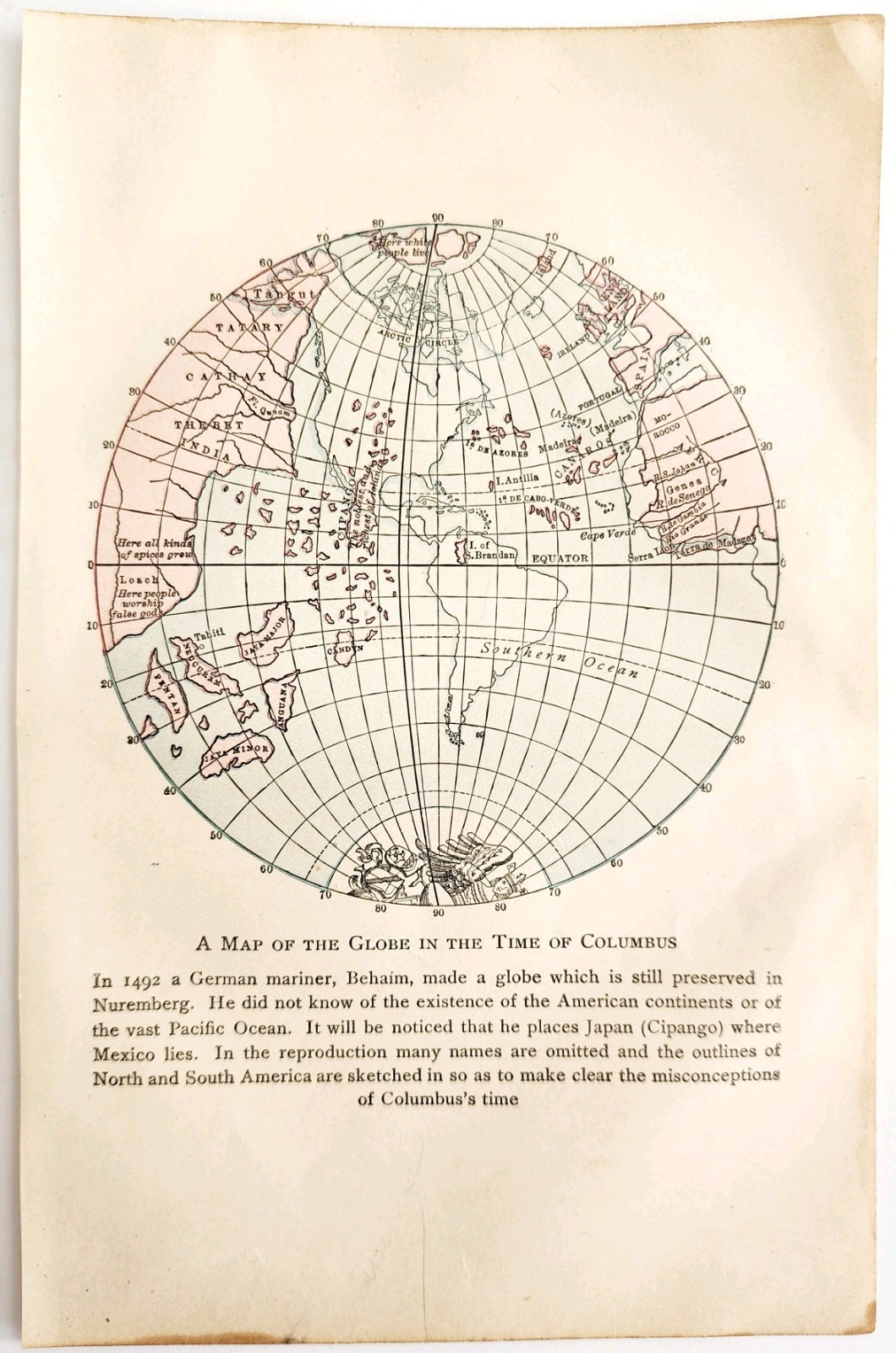 Primary image for 1929 Map Of The Globe In The Time Of Christopher Columbus History Of Europe E98D