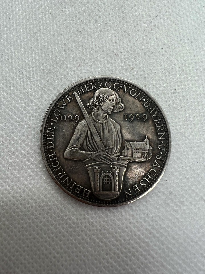Descubre la opulencia de la historia numismatica alemana con la Medalla de Enrique el Leon de 1929, una moneda conmemorativa de plata bellamente elaborada. Esta llamativa pieza presenta el retrato de Enrique el Leon, el duque de Baviera, famoso por su impactante legado en el reino medieval aleman. Su imagen va acompañada de un escudo y un castillo, que simbolizan su papel como protector y guardian de los territorios bavaros.