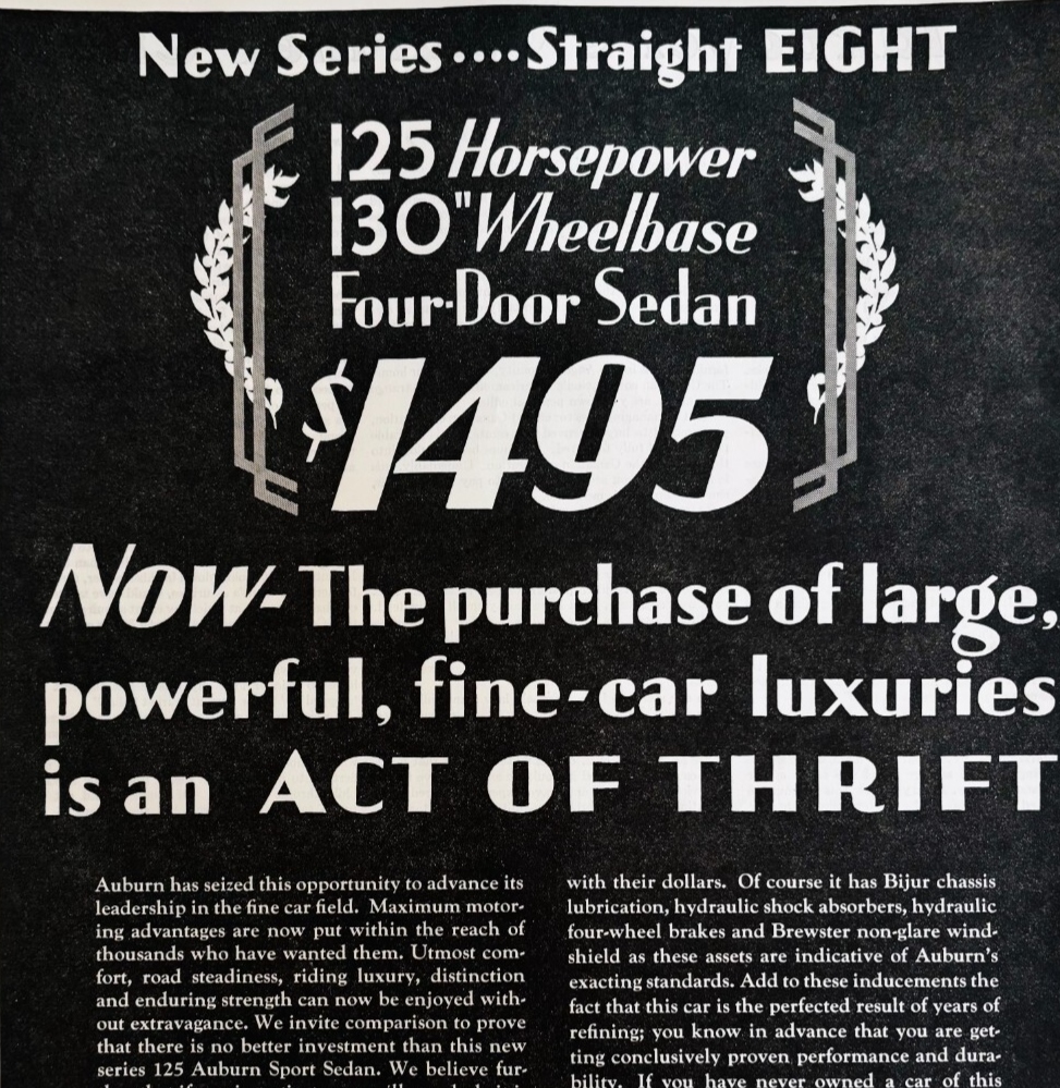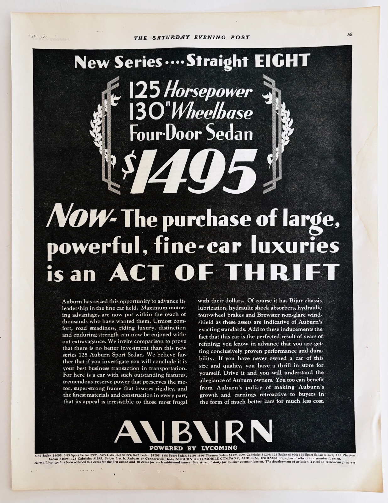 1930 Auburn 4 Door Sedan Straight Eight Advertisement Automobilia DWWW10