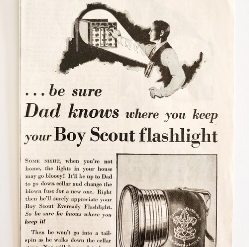 1930 Eveready Boy Scout Flashlight Advertisement Boy's Life Union Carbide HM2V