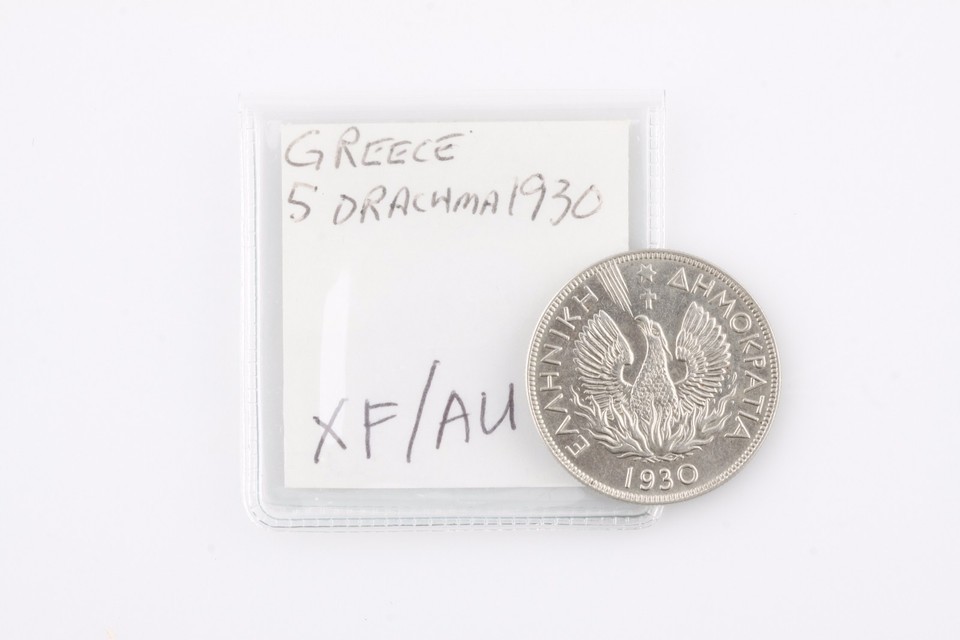 - 1930 Greece 5 Drachma Nearly Off Circulation Coin- show original title Origi...