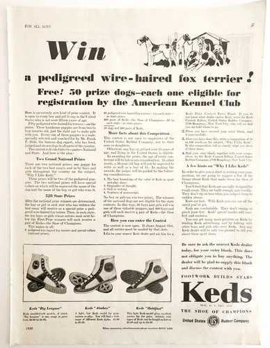 1930 Keds Sneakers Wire-Haired Fox Terrier Sneakers Advertisement AKC Dogs HM2H