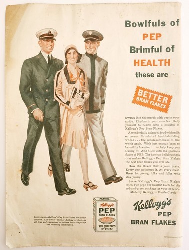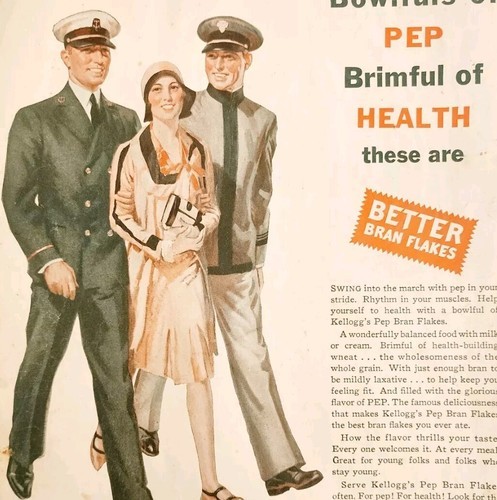 1930 Kellogg's Pep Bran Flakes Cereal Advertisement Breakfast Foods HM2H