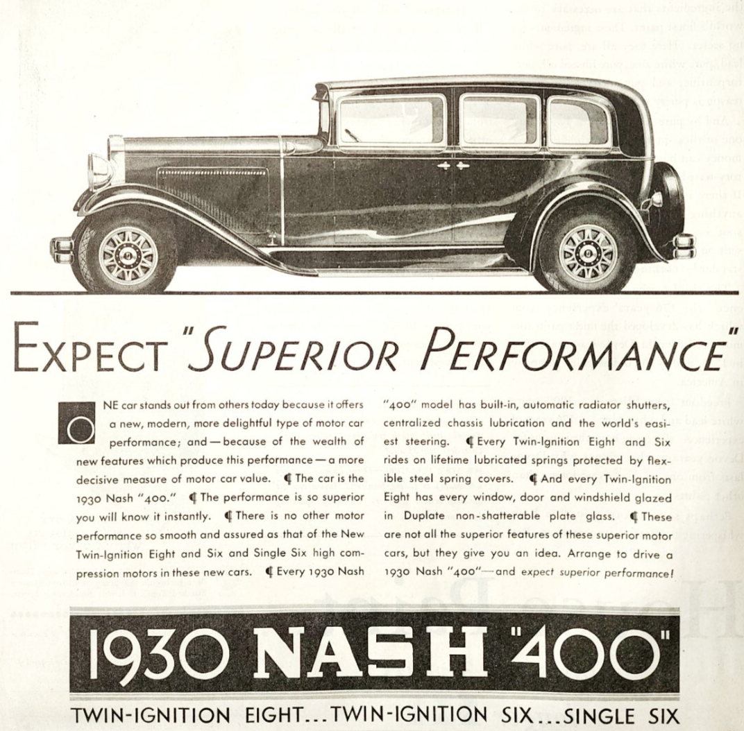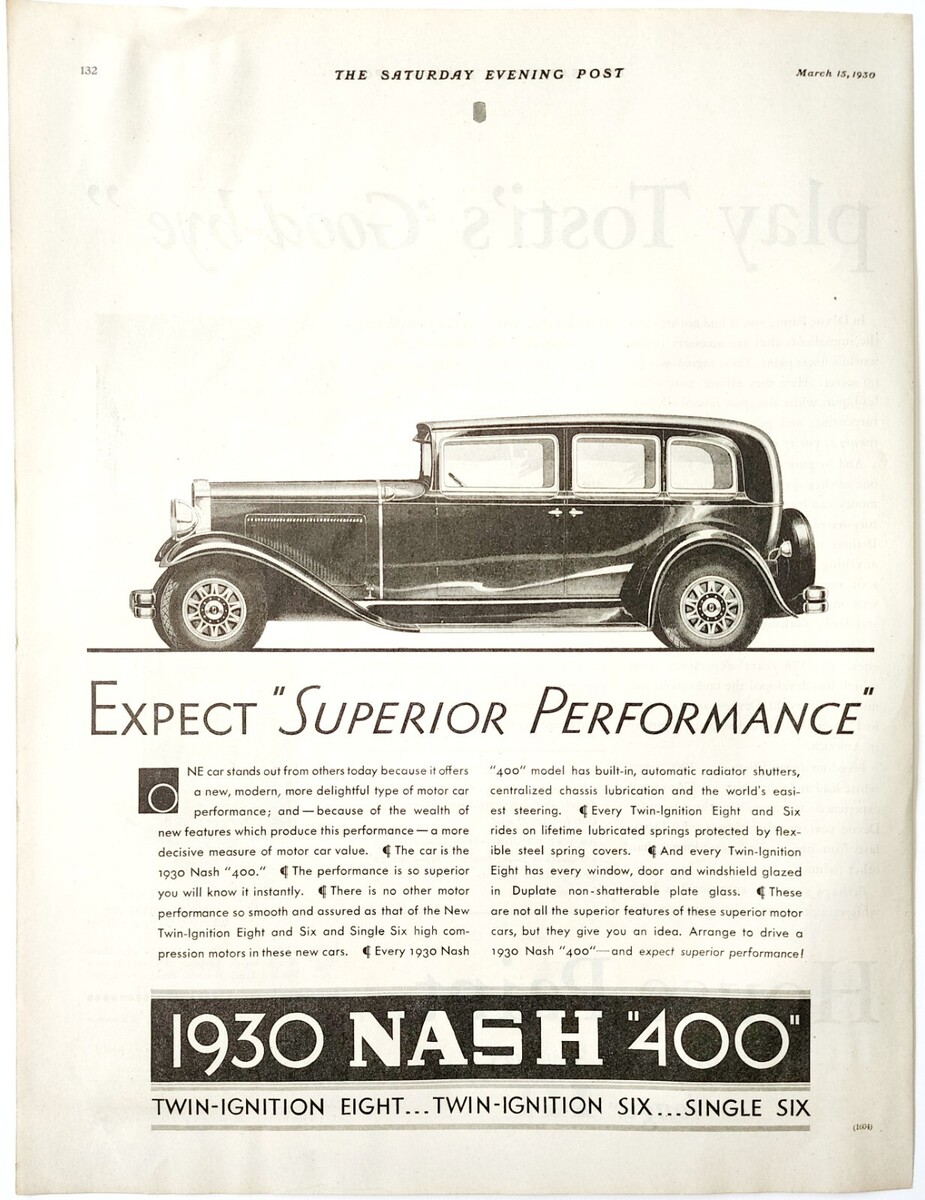 1930 Nash 400 Advertisement Automobilia Twin Ignition Eight Antique DWJJ19