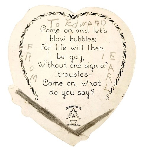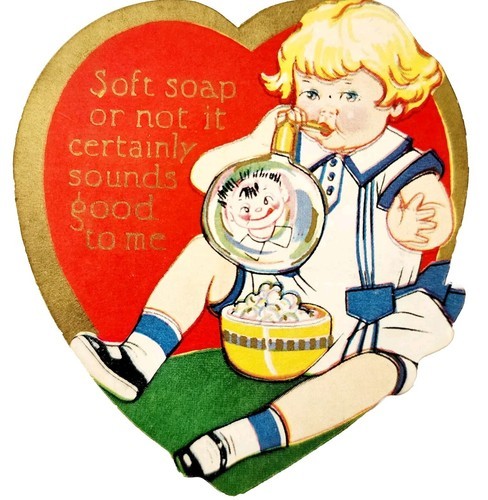 1930s Carrington Soft Soap Valentines Day Die Cut Card Chicago Illinois E85F