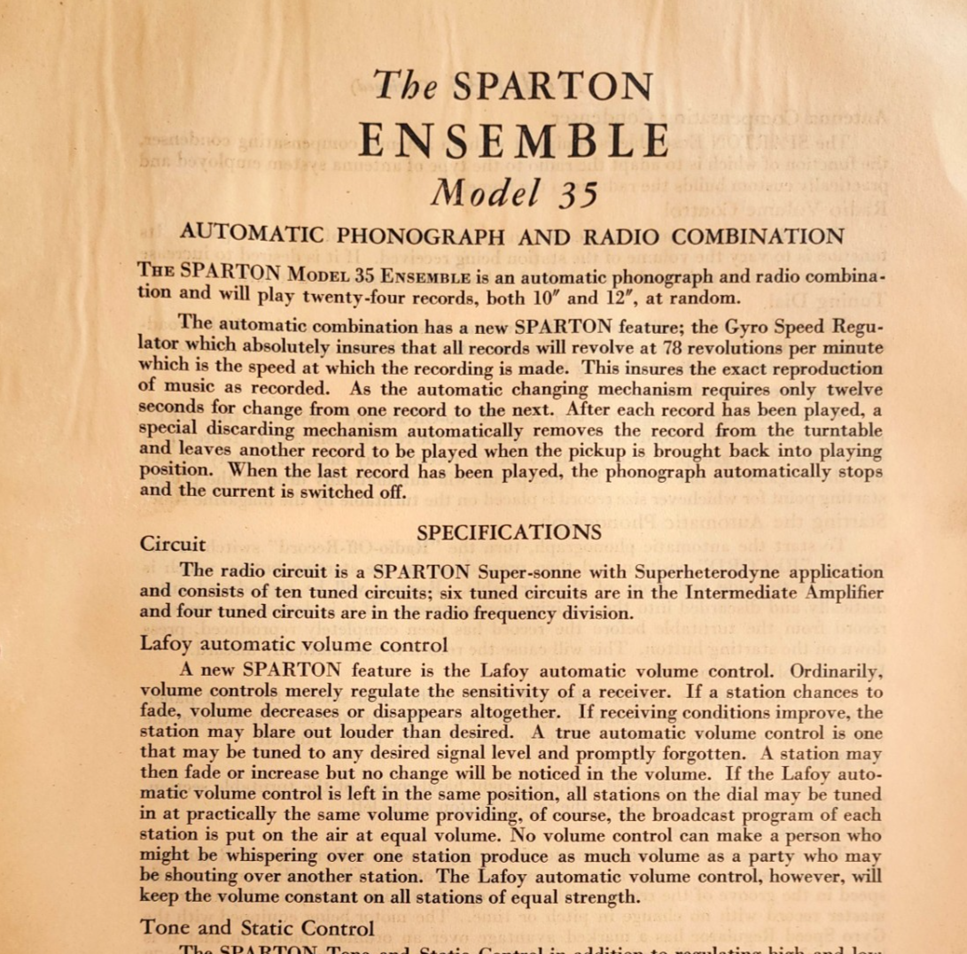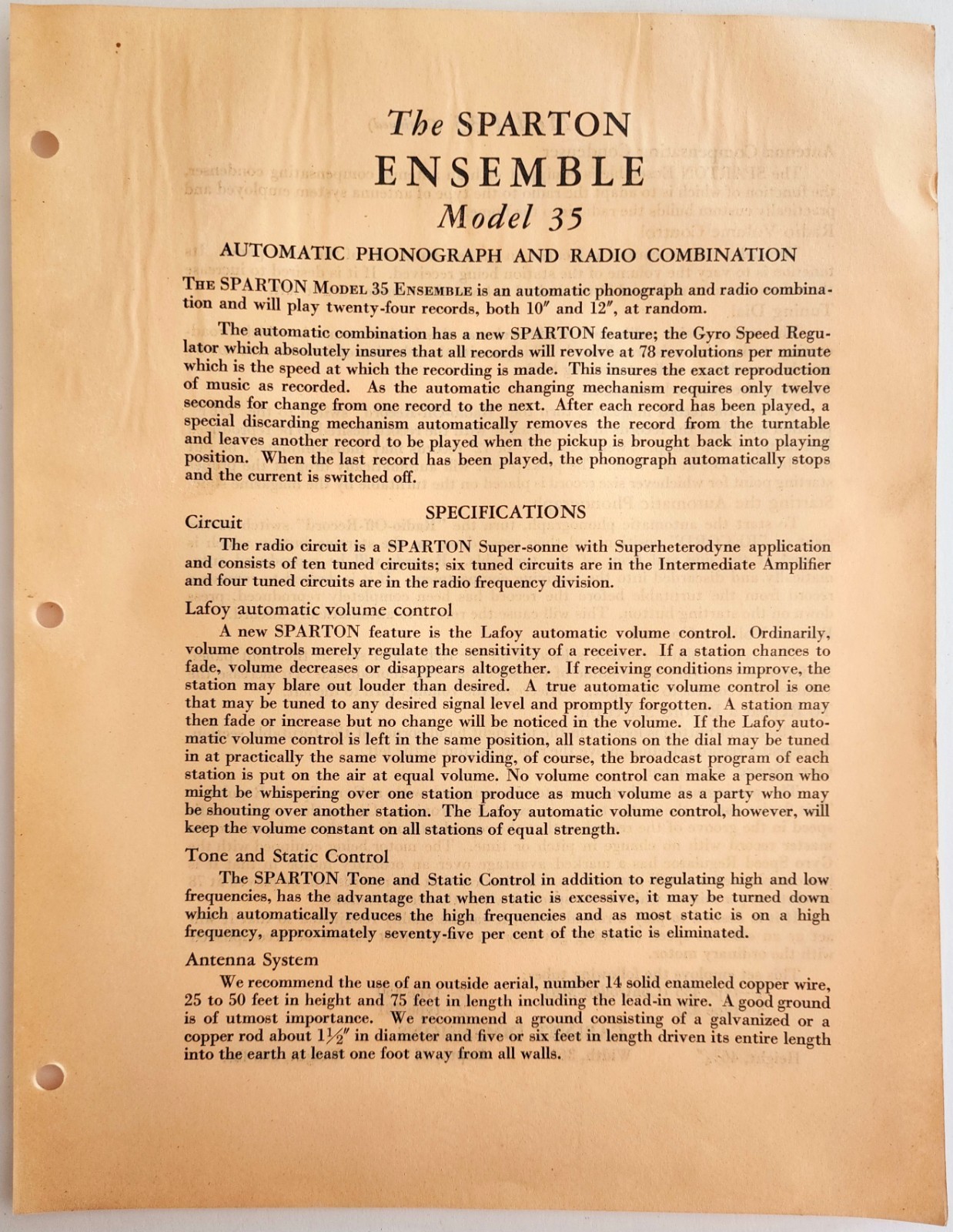 1931 Sparton Radio Phonograph Model 35 Advertisement Catalog Page Ensemble F20B