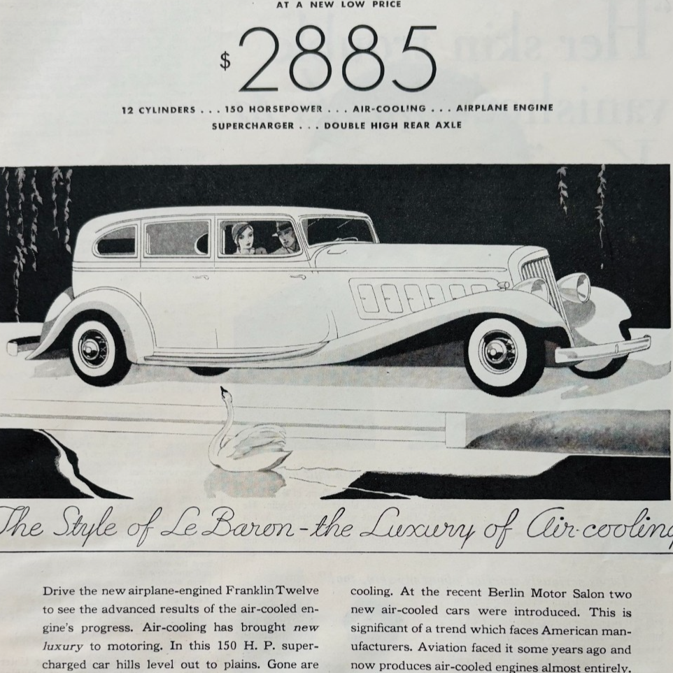 Primary image for 1933 Franklin Twelve Olympic & Airman Advertisement Automobilia Antique F18B1