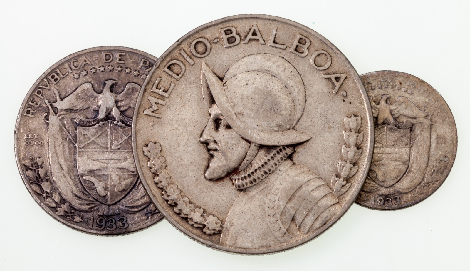 - 1933 Panamá 1/10 , 1/4 , 1/2 Balboa Lote De 3 Plateado Monedas Km#10.1 , 11.1 ,