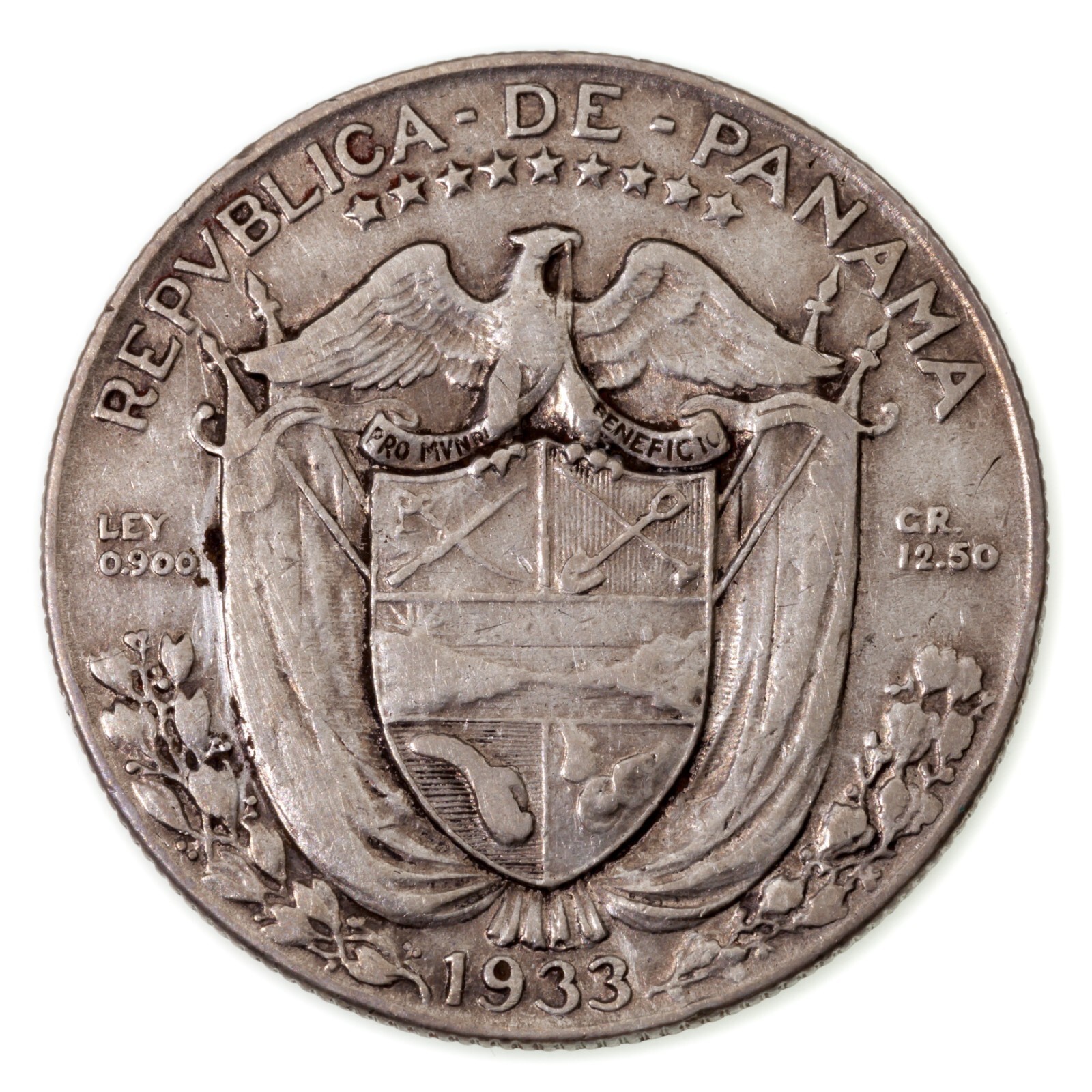1933 Panama 1/2 Balboa Moneda de Plata En XF Estado Km 12.1