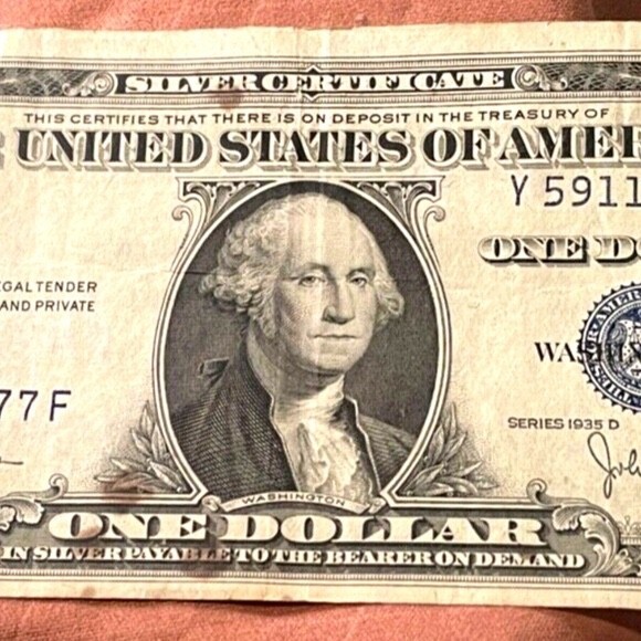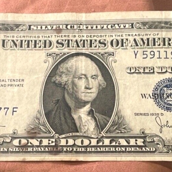 - 1935 Dollar Silver Certificate Blue Seal #Y 59119177 F