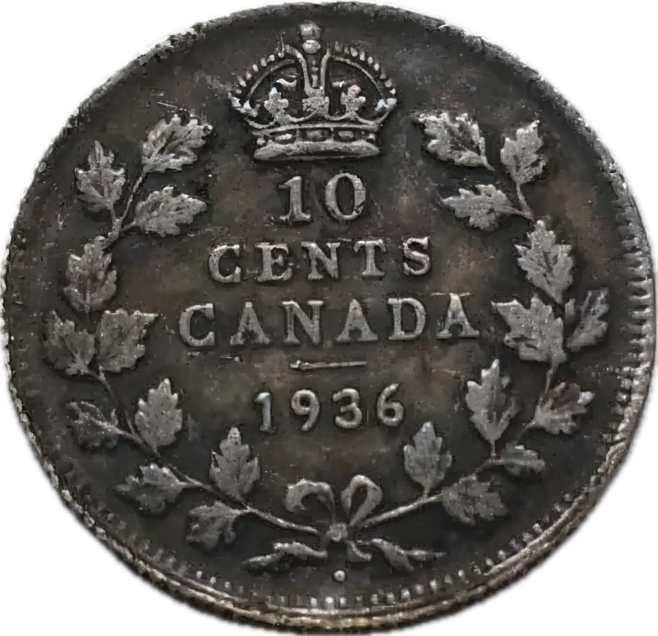 - 1936 Canada 10 Cents – George V Wreath Design Commemorative Reissue