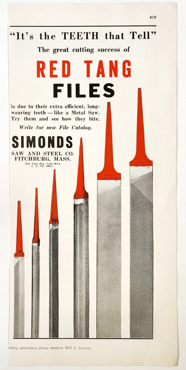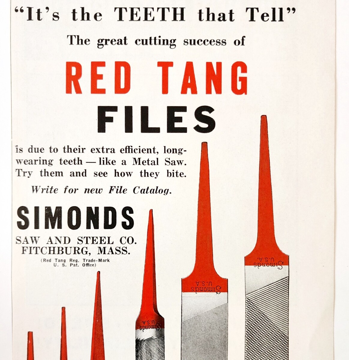 1936 Saw & Steel Co Red Tang Files Advertisement Fitchburg Massachusetts DWV10