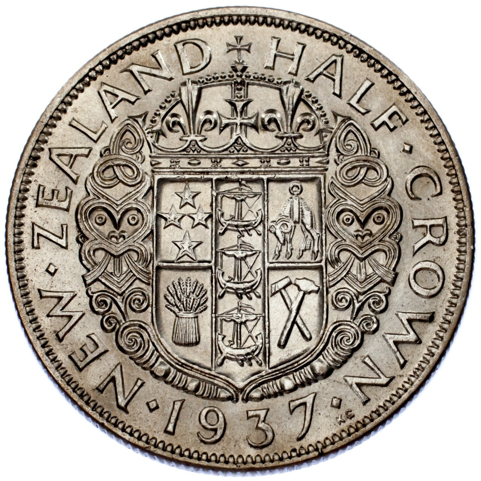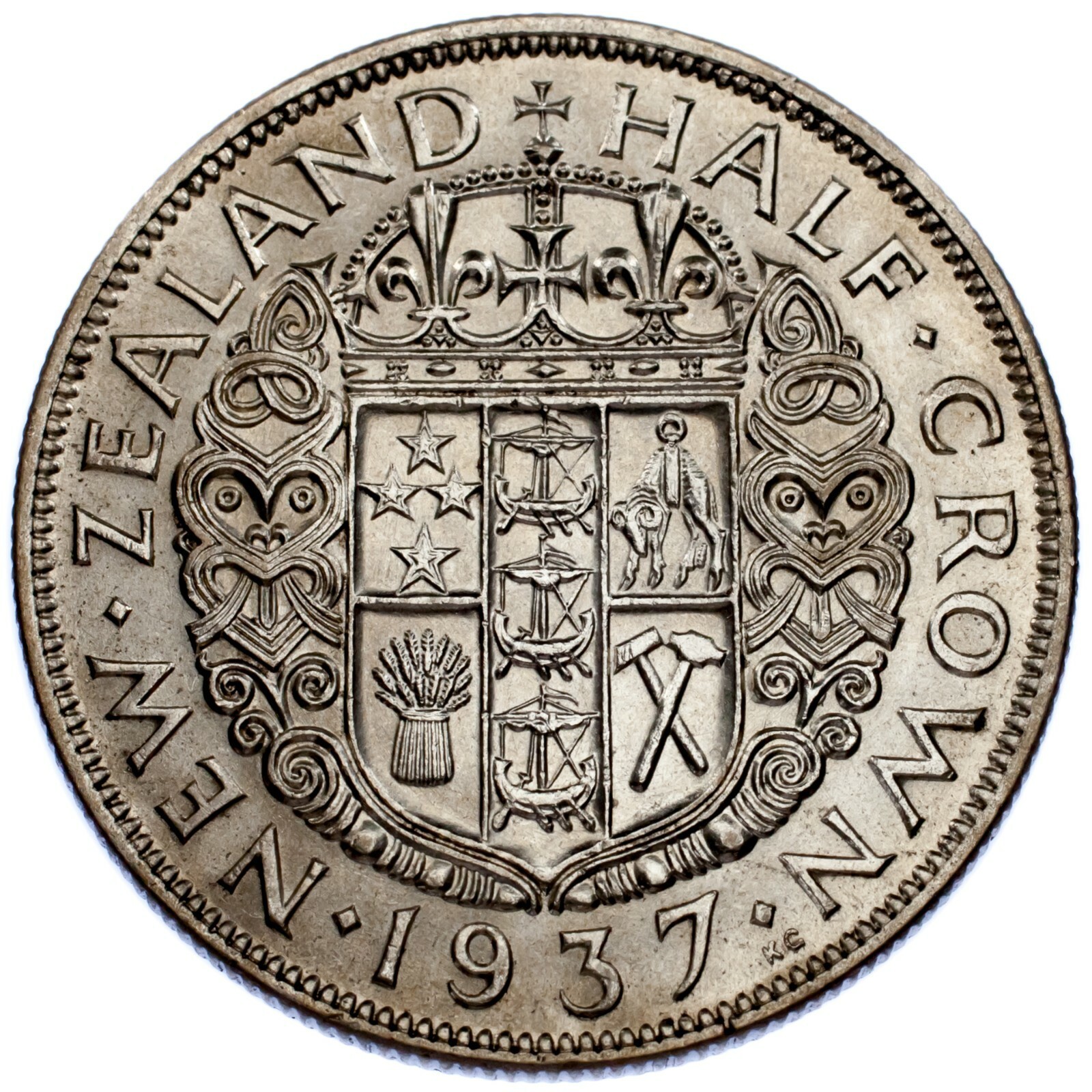 - 1937 New Zealand 1/2 Crown KM #11 XF Condition