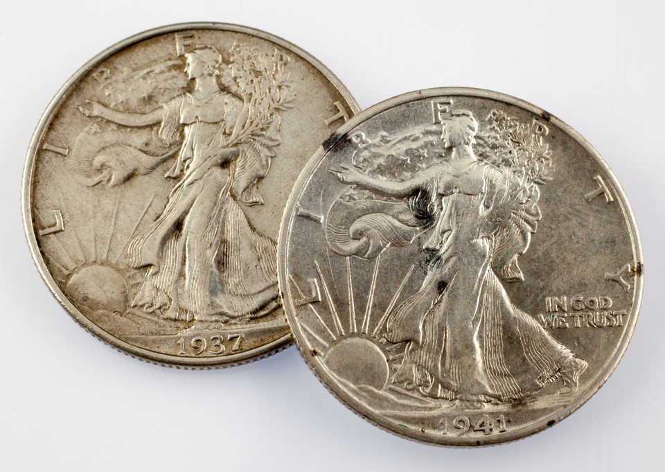 - 1937 and 1941-S 50C Walking Liberty Half Dollars in AU Condition
