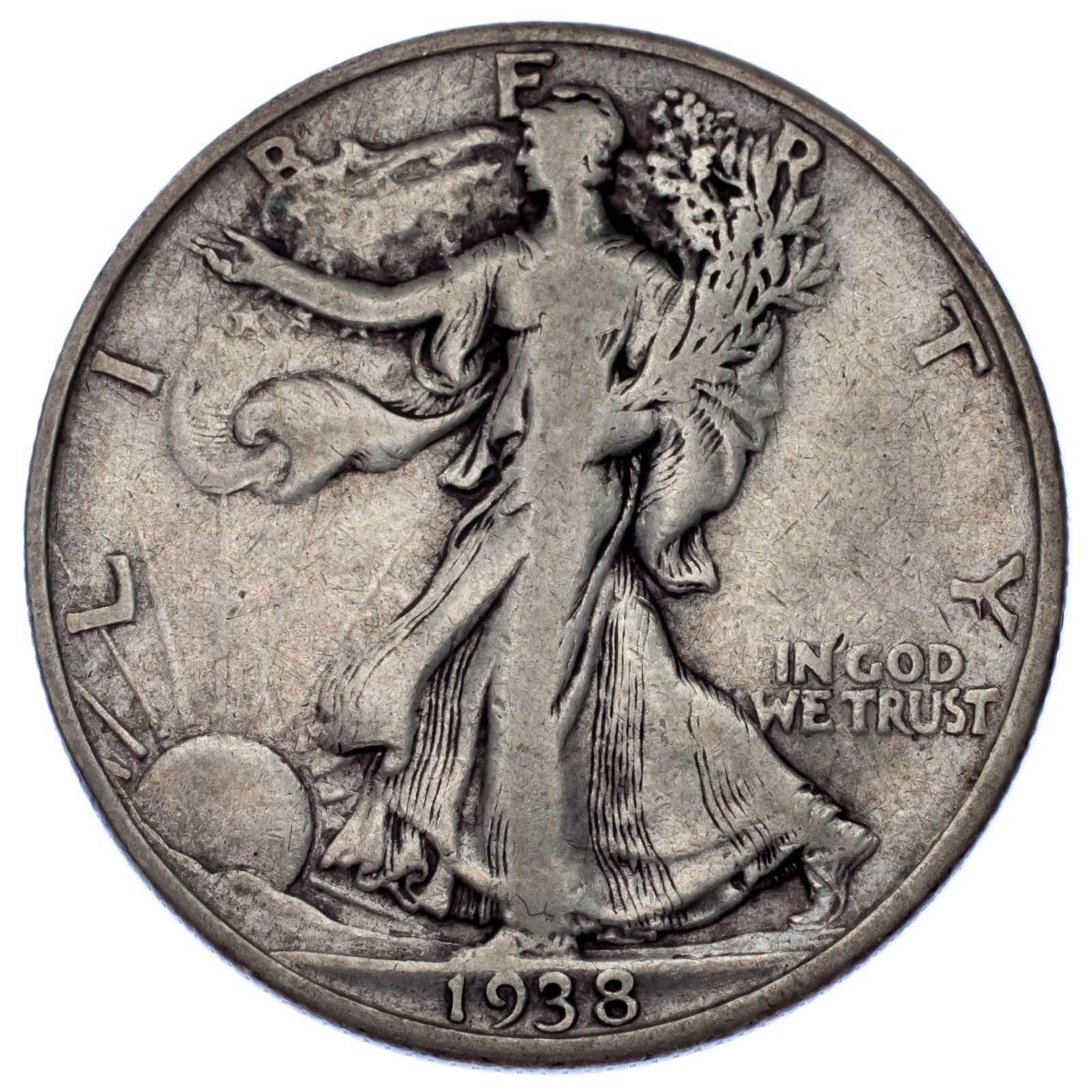 - 1938-D 50C Walking Liberty Half Dollar Fine Condition, Natural Color Nice Detail