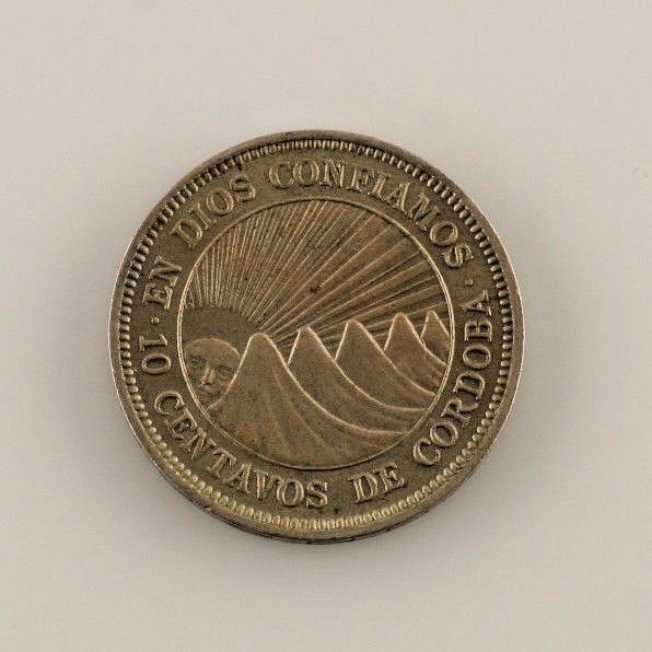 1939 Nicaragua 10 Centavos Coin Extra Fine Condition Copper-Nickel