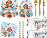 - 194 Pcs Christmas Party Decorations - Gingerbread House Cookie Plates, Cups, Nap