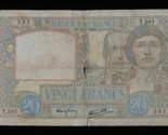 - 1940 France 20 Francs Note Science et Travail Banque de France (P#92a.4)