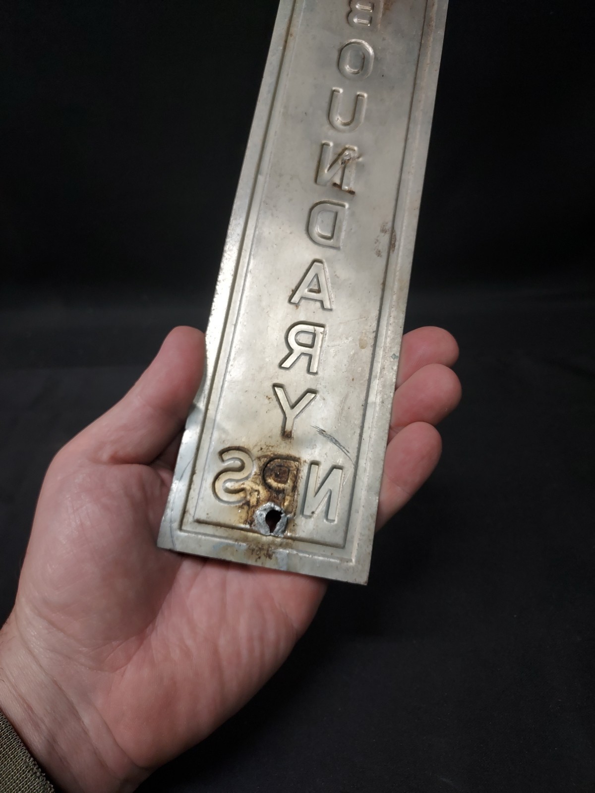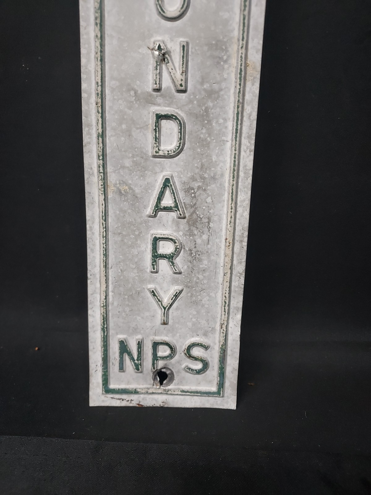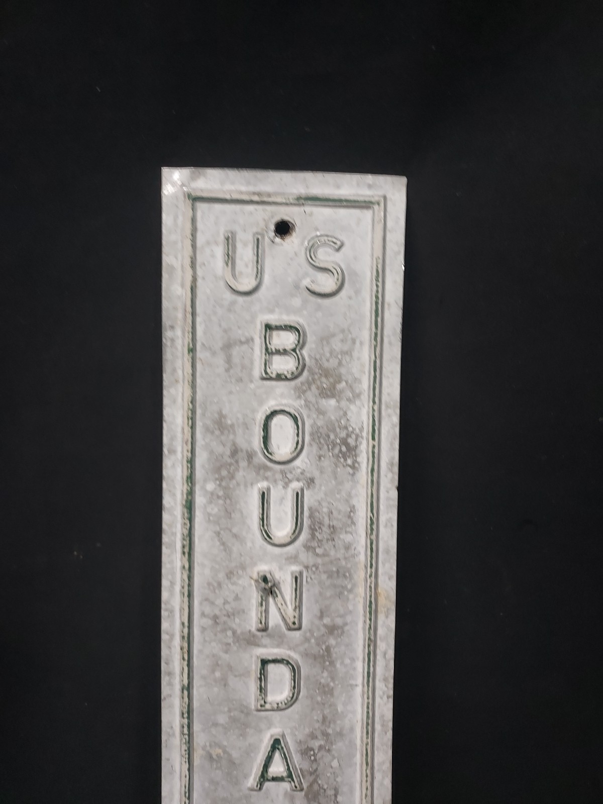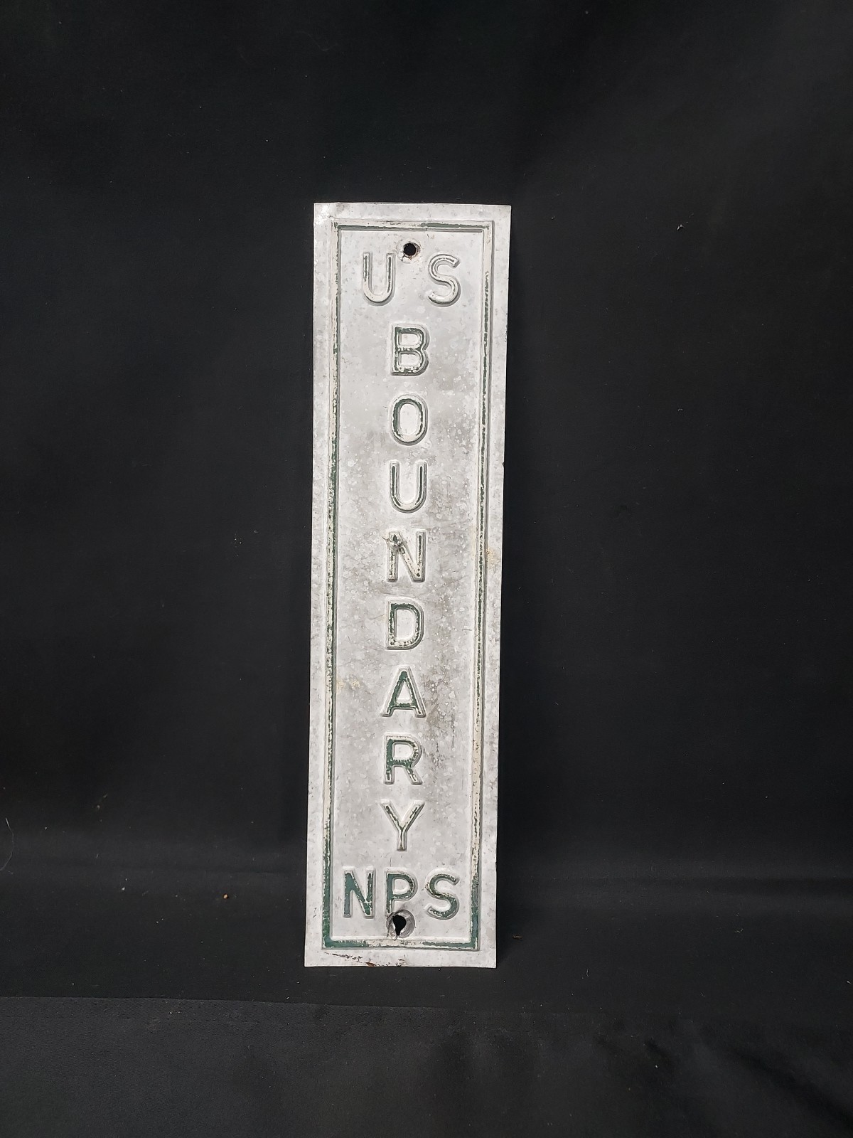 1940s 1950s U.S. Boundary Line Embossed Metal Sign National Park Service