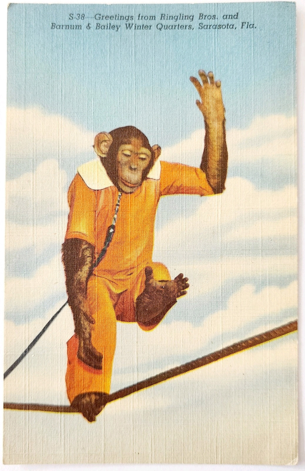 Primary image for 1940s Ringling Bros Barnum & Bailey Linen Postcard Chimpanzee Tightrope E99D