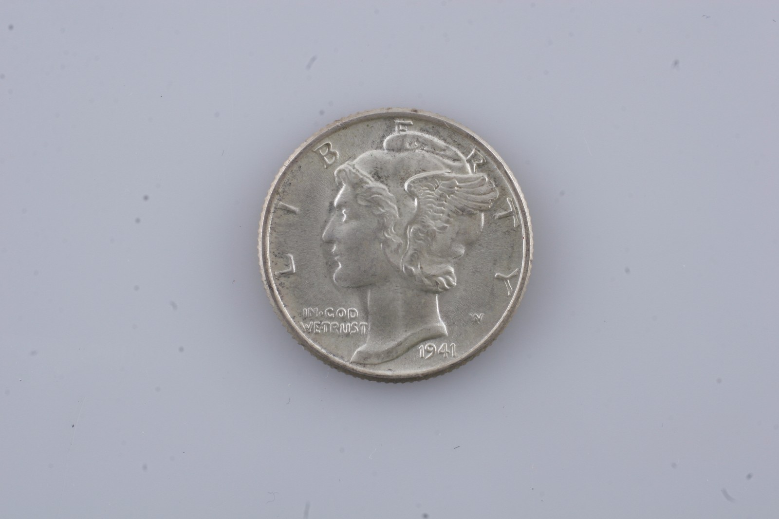 - 1941 10C Mercury Dime, Gem BU Condition, Full Split Bands, Terrific Eye Appeal