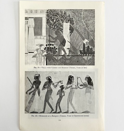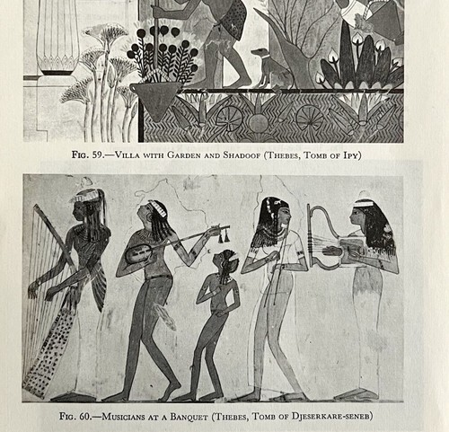 1942 Egypt Musicians and Villa Garden Historical Print Antique Ephemera 8 x 5