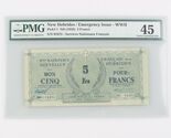 Sigillato in un supporto PMG con il titolo "Nuova ebrides / Problema di emergenza - Seconda Guerra Mondiale // Pick# 1 Nd (1943) 5 Franc // S / N 01673 - Servizi NationAux Francais"