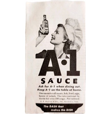 Primary image for 1944 A1 Steak Sauce Advertisement Condiments Foods Hartford Connecticut DWJJ7
