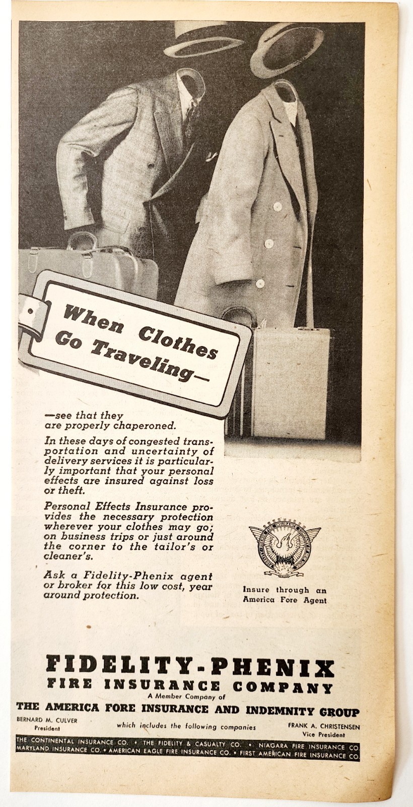 1944 Fidelity Phenix Fire Insurance Advertisement WW2 Era Insured Items DWP7B