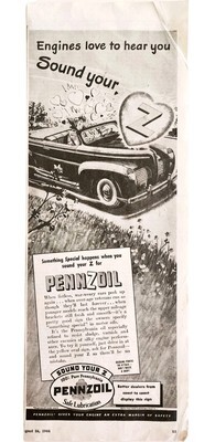 1944 Pennzoil Gasoline & Oil Advertisement Automobilia Pennsylvania Pure DWJJ7